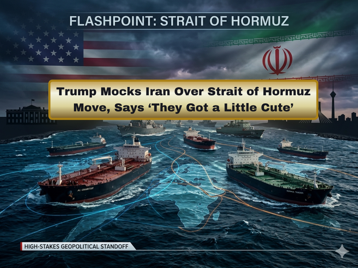 A1. Donald Trump mocked Iran’s reported actions in the Strait of Hormuz, saying the attempt had “gotten a little cute” and stressing that any attempts to pressure or blackmail the United States would not succeed.